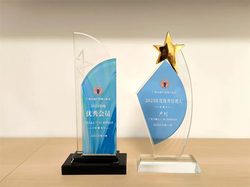 表彰环节,天地正广州律师所荣获协会颁发的2025年度“优秀会员”殊荣,卢列律师荣获协会颁发的2025年度“优秀管理人”称号。